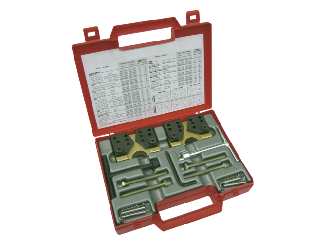 Dieser Werkzeugsatz beinhaltet sämtliche Montageplatten, die für Alfa, Fiat und Lancia Twin Spark u. JTS Motoren notwendig sind um diese in die richtige Grundeinstellung zu bringen. Zusätzlich beinhaltet es noch eine Meßuhr inklusive den dazugehörigen Meßuhrhalter und dient dazu die Nockenwelle(n) und die Kurbelwelle bzw. Nebenaggregate, die vom Zahnriemen angetrieben werden beim Wechseln des Zahnriemens richtig positionieren u. blockieren zu können.
